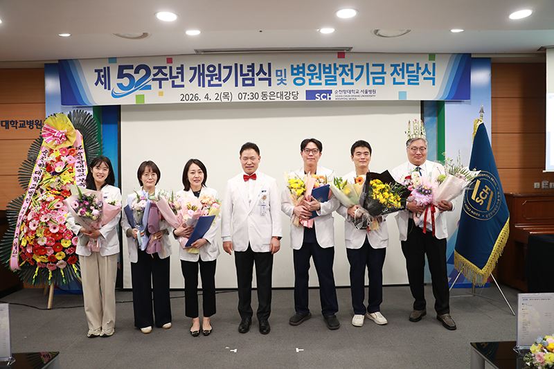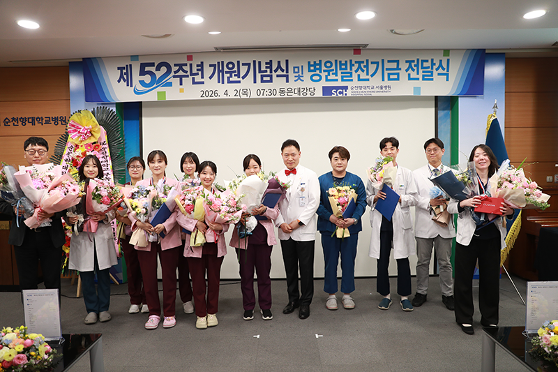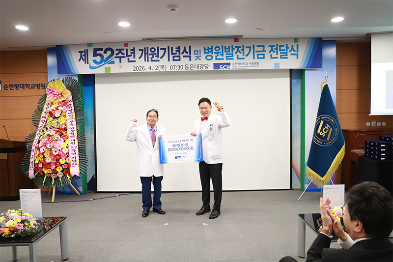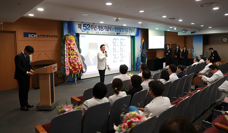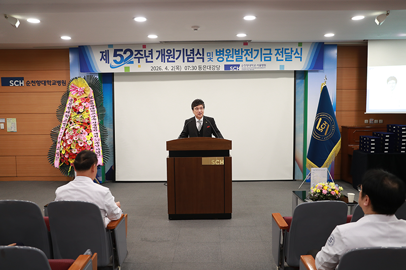 순천향대학교 서울병원(병원장 이성진)은 4월 2일 개원 52주년을 맞아, 동은대강당에서 병원발전기금 전달식을 겸한 기념식을 갖고, ‘환자가 가장 존중받는 순천향대병원’을 다짐했다.